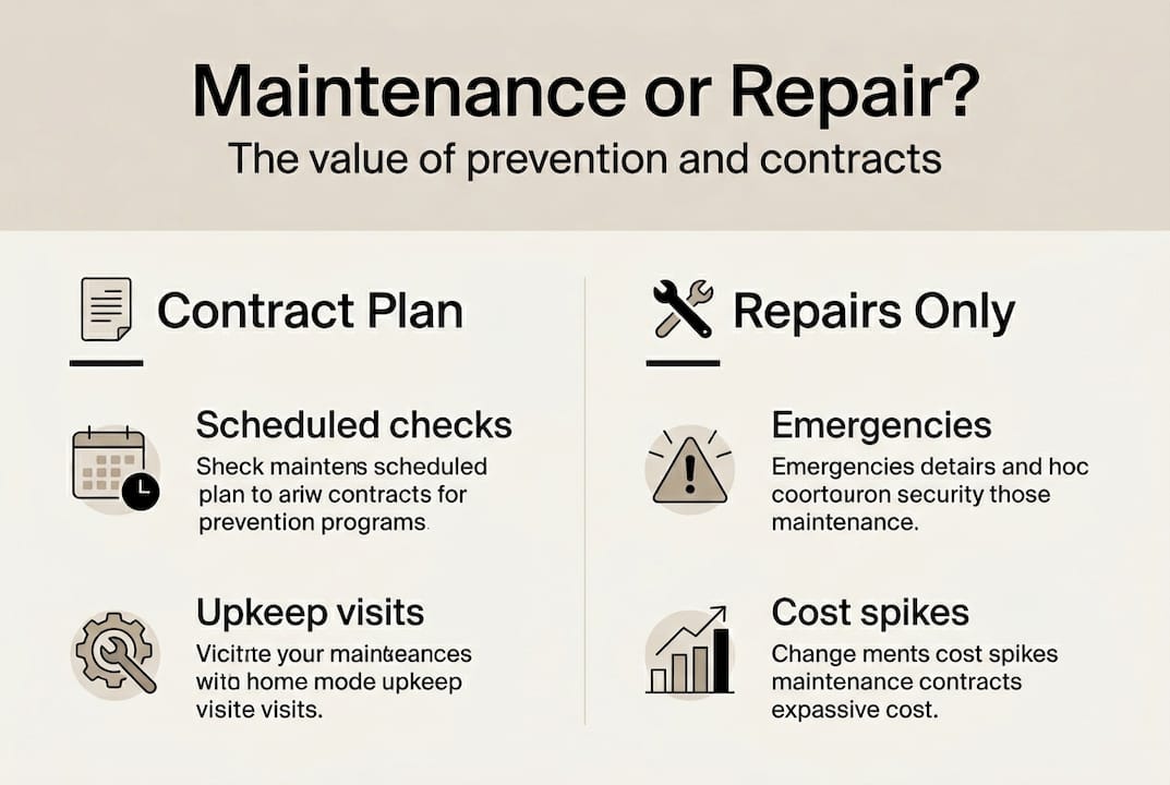 Understanding the difference between maintenance vs repairs also helps you appreciate why prevention pays. Repairs fix what is broken. Maintenance stops things breaking in the first place.
